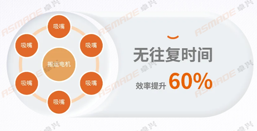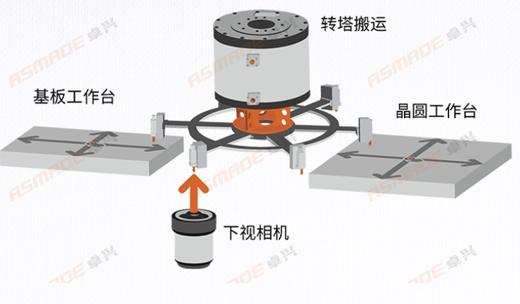 The turret-type mounting mechanism is an innovative chip mounting method pioneered by Zhuoxing Semiconductor in the industry. The semiconductor silver epoxy die attach machine is equipped with six individual nozzles and adopts a multi-process parallel operation design. It performs chip mounting through multi-station rotating cycles, enabling simultaneous pick-up, mounting, and real-time vision compensation. This achieves the dual effect of "non-stop mounting" and "shortened production cycle," increasing production efficiency by 60%.